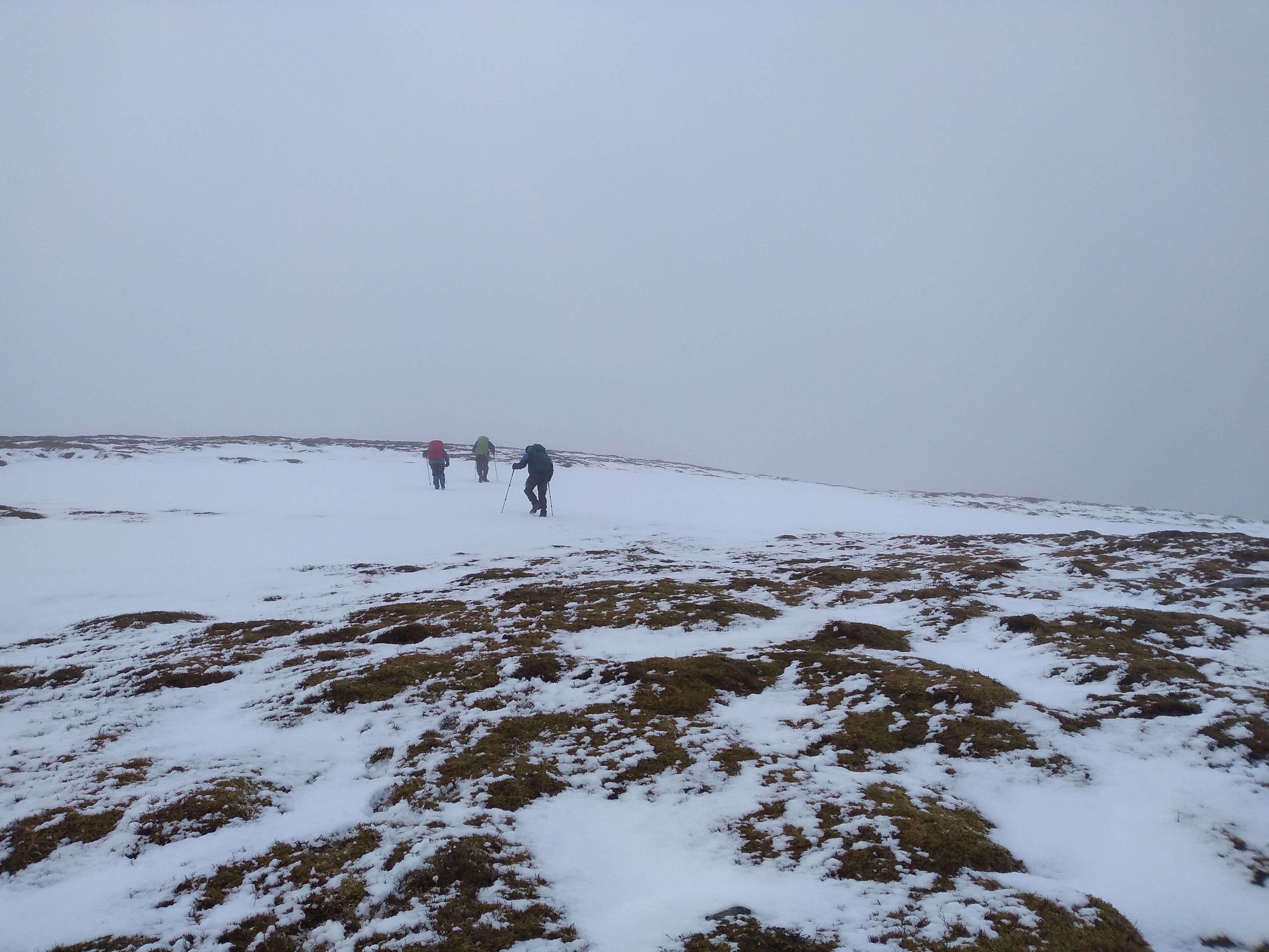 More ‘taps aff’ weather than deep Winter, the group nevertheless managed to find sufficient snow to get crampons and ice axes into play on several days starting with a day of excellent instruction in use of same from local trainer, Richard Kermode.