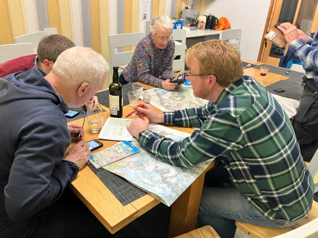 On Saturday evening after an excellent communal meal some of us settled down to look at Chamonix maps and guide book to share our ideas and do some initial planning for the July meet in Chamonix.