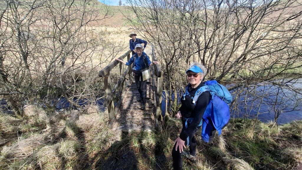 On Sunday, the sun shone and the sky was blue, though there was ice on the picnic tables outside the hostel! There were three walks, of varying lengths depending on travel distances home, all from the hostel. Two of the walks went south from the hostel. The longer walk explored a standing stone on a ridge, and a return through woodland, with a very steep descent at the end! The third walk went east to Soar y Myndd chapel, then north west on a minor road before ascending a grassy ridge onto the Cambrian Way and returning to the hostel. Ten people left Tyncornel after a very enjoyable meet, while two people had made independent arrangements to stay an extra night or two.